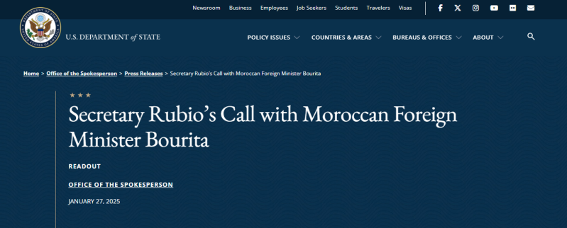 Der Chefdiplomat der USA erklärte außerdem, dass die USA bereit seien, die Zusammenarbeit mit Marokko zu intensivieren, um die gemeinsamen Interessen in der Region voranzutreiben und Konflikte zu beenden, insbesondere im Rahmen des Abraham-Abkommens.